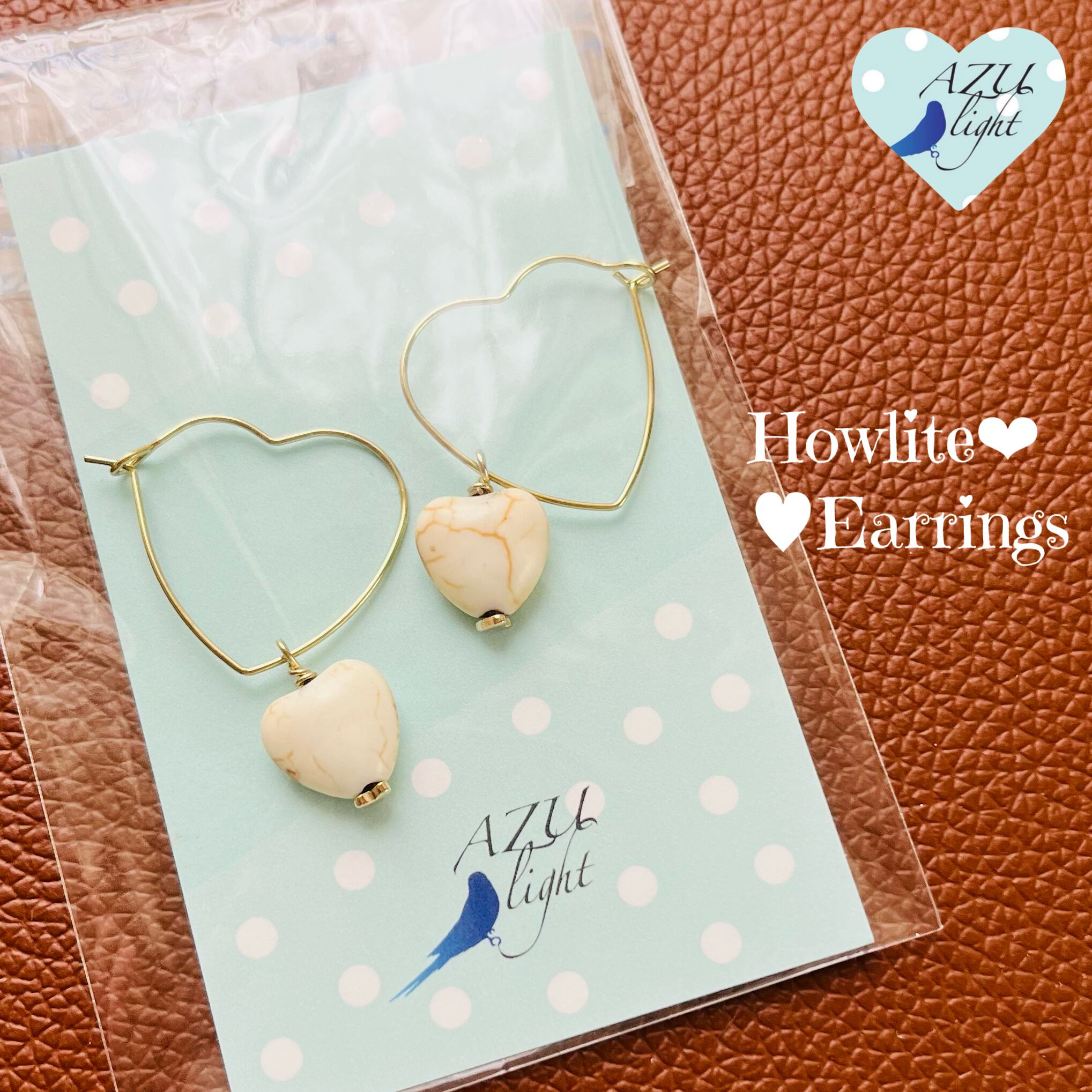 ハート型ハウライト(12×12×5㎜)×ハート型フープを合わせた、大人可愛い大ぶりピアスです。