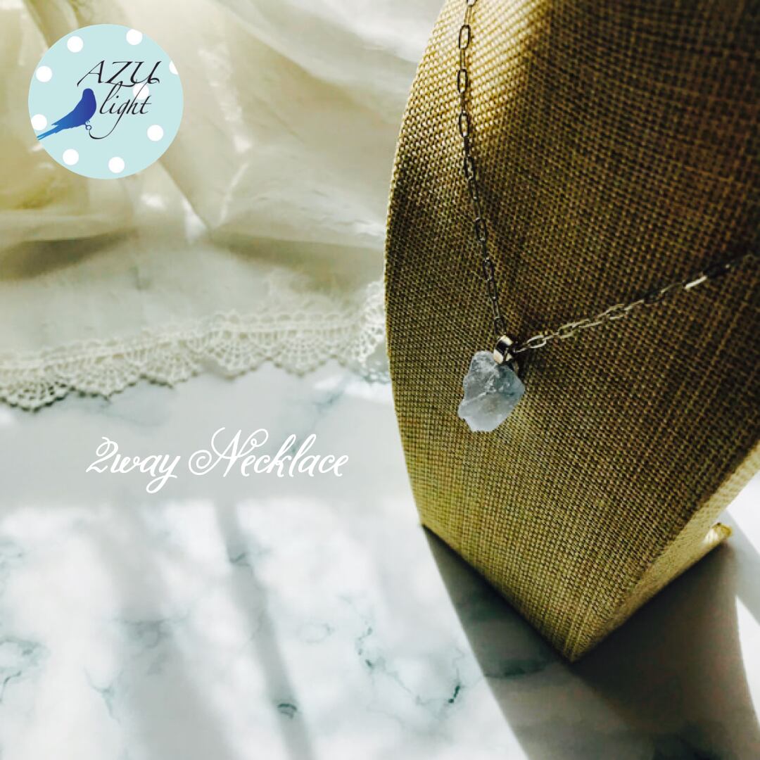 セレスタイト(約19×13.5×10㎜/ カドミウム&ニッケル&鉛フリー )&羽モチーフ付きチェーンを合わせた、シンプルで大ぶりな2wayネックレスです。