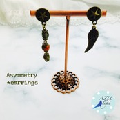 ユナカイト(約6〜7㎜)&羽モチーフ(25×10㎜)& 星柄ピアスベース(直径12㎜/ニッケル&鉛フリー)を合わせた、大人カジュアルなアシンメトリーピアスです。