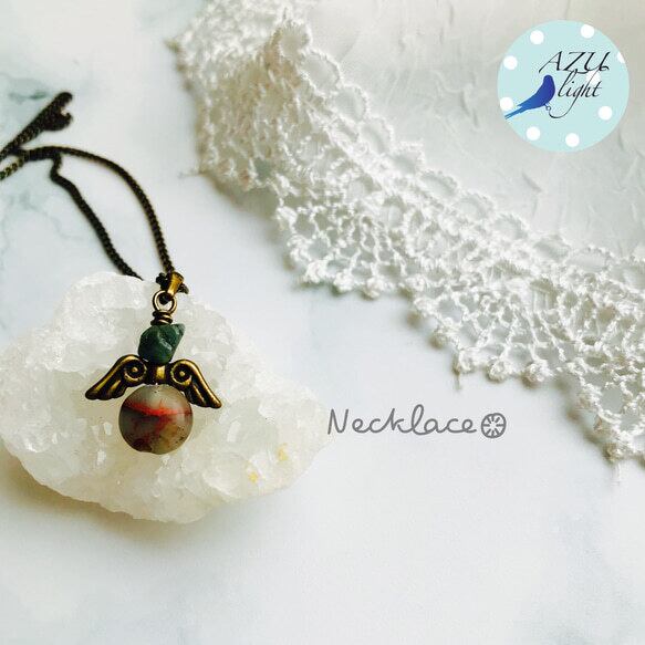 ブラジル産/2way【蟹座/獅子座/牡牛座/天秤座の守護石✴︎5月誕生石✴︎精神をクールダウンさせ、進むべき道を示す✴︎大地のエネルギーを与えバランスを整える✴︎イライラを抑える&緩やかな癒し✴︎恋愛成就&幸せな結婚】エメラルド×インプレッションストーン×天使の羽のネックレス/チャーム