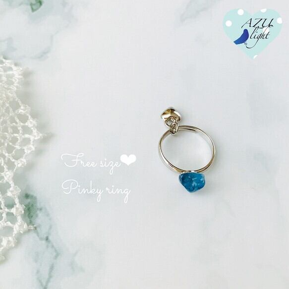 サイズフリー/2way【恋愛中の喧嘩を防ぐ、仲直り、幸せな結婚✴︎生活に潤いを与える✴︎水商売、芸術、ヒーリングなどのお仕事にお勧め✴︎幸せ、富、喜び】アクアマリン×ぷっくりハートのピンキーリング