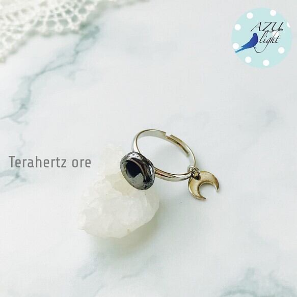 サイズフリー/2way【電磁波や有害な放射線から身体を保護する✴︎人間の持つ自然治癒力を引き出す✴︎空間の浄化✴︎美容と健康、若さの維持】テラヘルツ鉱石×三日月モチーフのピンキーリング
