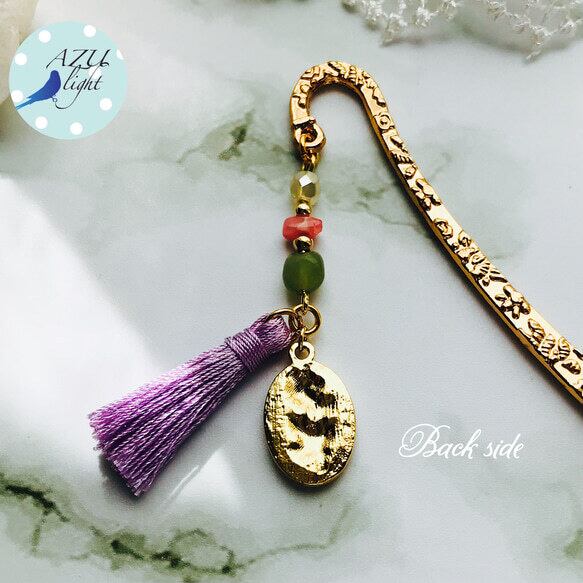 【獅子座&乙女座の守護石✴︎無条件の愛✴︎生きる喜びを与える✴︎家族との強い絆✴︎心配や不安を取り除く✴︎食欲減退や夏バテの緩和✴︎老化予防、鬱の改善】プレナイト×インカローズ×薔薇モチーフ×タッセルのブックマーク