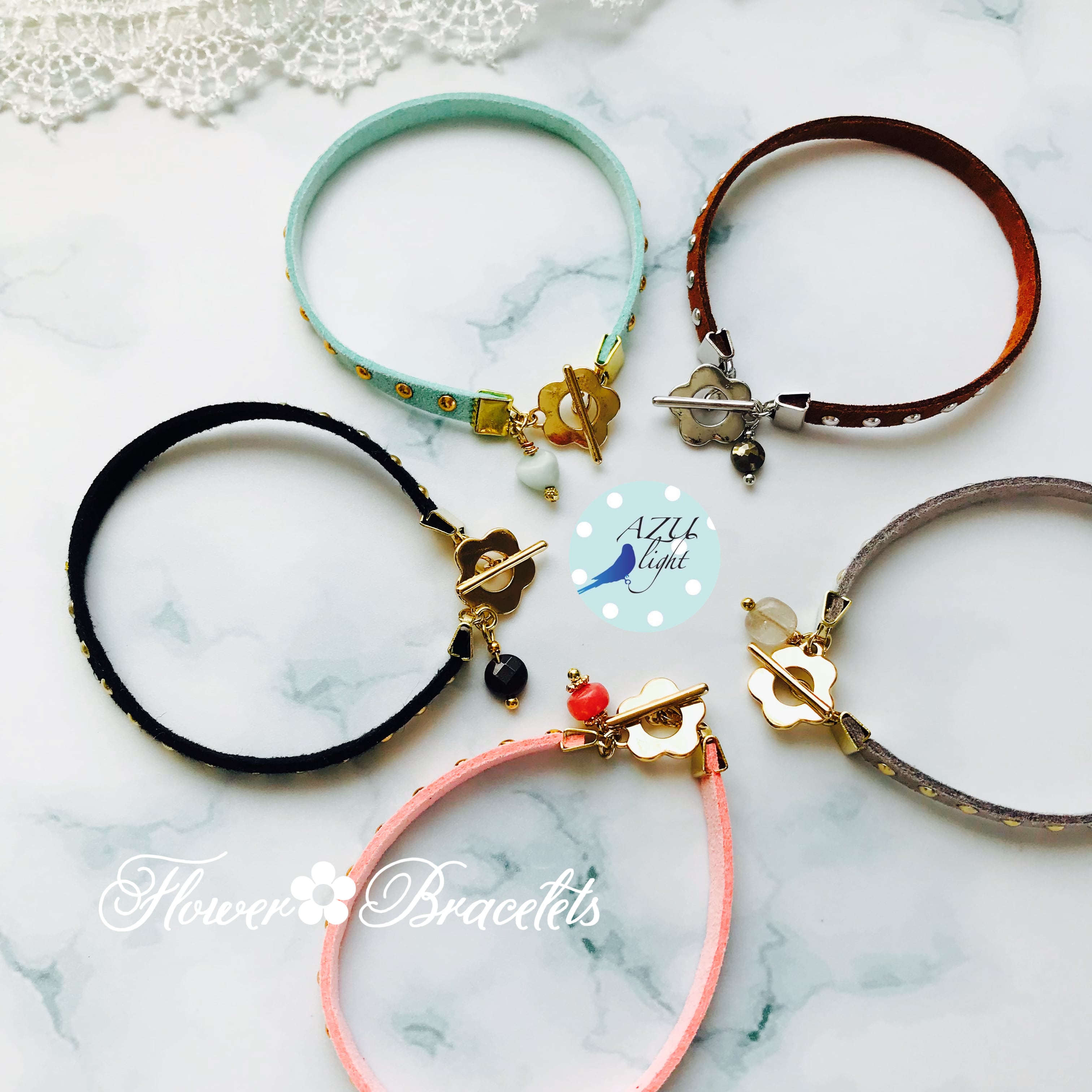 花/ブラックカラー【前向きなパワーや勝利を呼び込む✴︎怒りが内側に向くのを防ぐ✴︎怪我や病気から身を守る✴︎恋愛成就✴︎1月誕生石&山羊座/水瓶座の守護石】ガーネット×スタッズ付きスエードのフラワーマンテルブレスレット