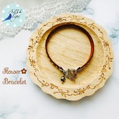宝石質パイライト(コインカット/直径5㎜/AAA-)&スタッズ付きフェイクスエード(幅/5㎜)×フラワーマンテルを合わせた、大人カジュアルなマンテルブレスレットです。