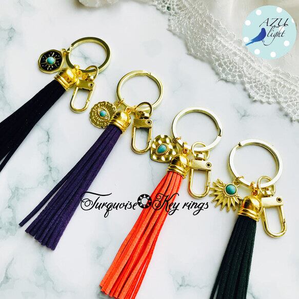 ターコイズ付きホルスの目モチーフ(直径18㎜)&タッセルを合わせた、大人カジュアルな3wayキーホルダー/バッグチャームです。