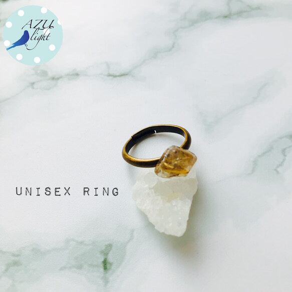 菱形のようなタンブル型ルチルクォーツ(約11×10×5㎜/AA+)&アンティークブロンズカラーのリングベースを合わせた、シンプルなフリーサイズリングです。