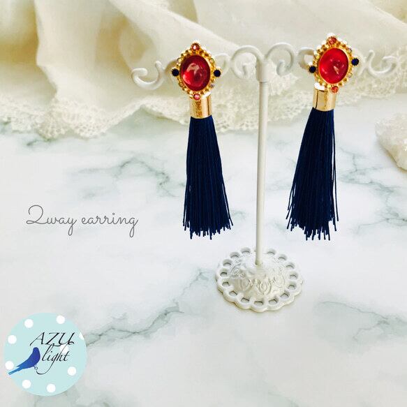 ピアスベースの向きは縦横お好きな向きで、タッセル付きキャッチ部分は他のピアスにもお使いいただけます。