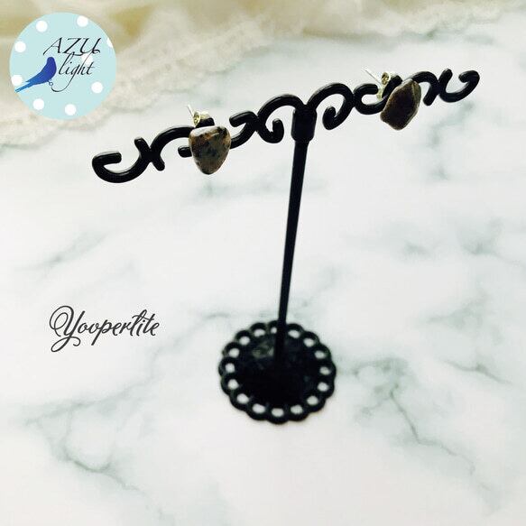 ブラックライトで光る希少石、ユーパーライト(約10×7×3㎜)のシンプルな一粒ピアスです。