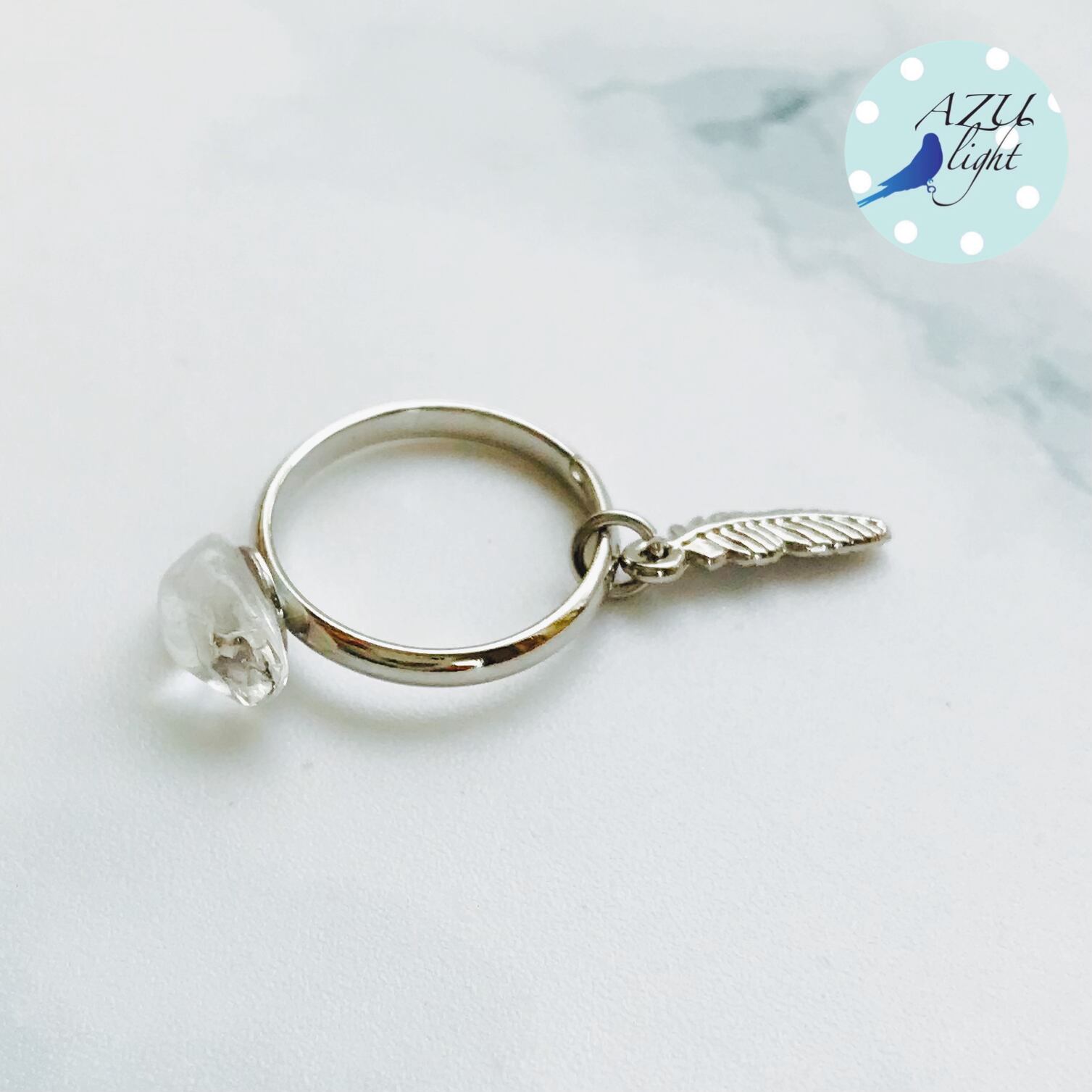 4月誕生石/ヒマラヤ産/ピンキーリング【決断力&創造力&洞察力&サイキック能力を高める✴︎純粋な生命力や調和を生み出す&瞑想の効果を高める✴︎神経系やあらゆる種類の癒しのサポート✴︎牡羊座/獅子座/魚座の守護石】カンチェンジュンガ産ヒマラヤ水晶×羽モチーフのフリーサイズ2wayリング