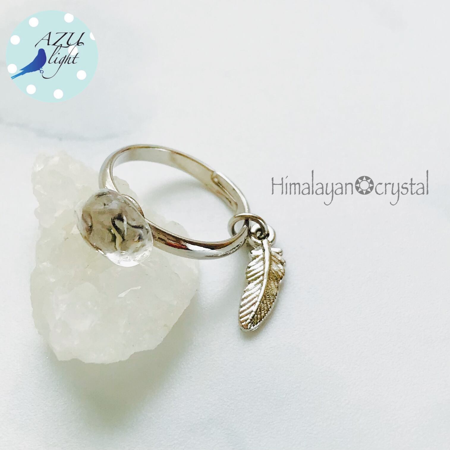 ヒマラヤ山群の主峰、カンチェンジュンガ産ヒマラヤ水晶(約6×9×5㎜/AAA〜AA)&羽モチーフ(10×4㎜)を合わせた、フリーサイズのピンキーリングです。