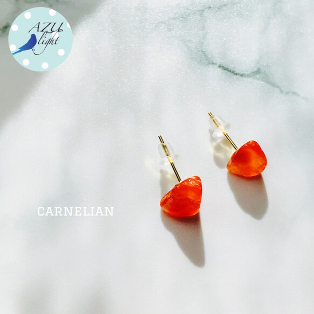 オレンジカーネリアン(約9〜10×7×5〜6㎜)の、シンプルな一粒ピアスです。