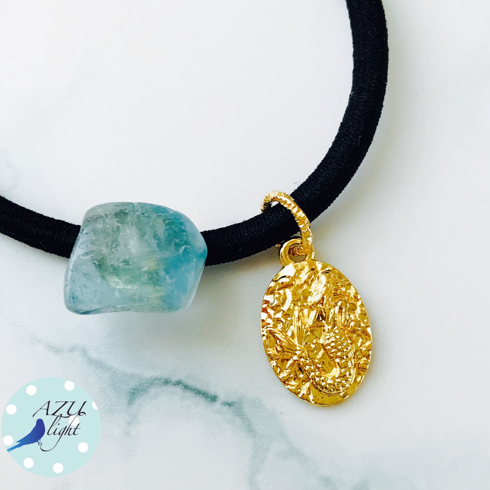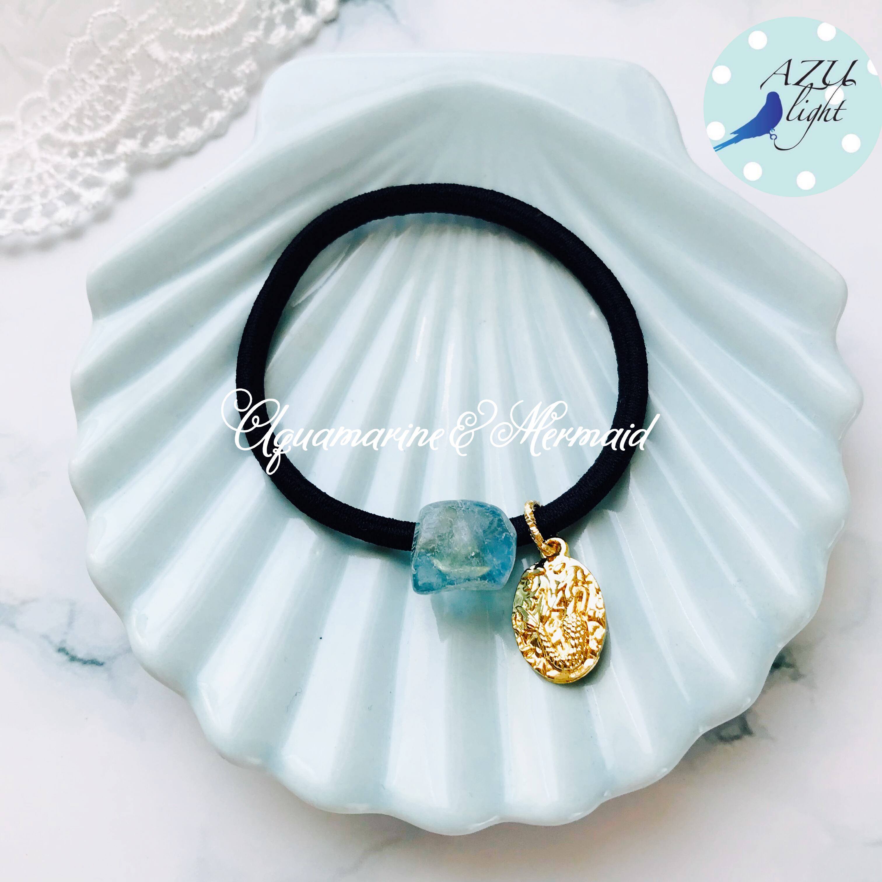 【喉のチャクラの活性化✴︎3月誕生石&魚座/牡羊座/牡牛座/双子座/天秤座/蟹座の守護石✴︎心に滞った負の感情を洗い流す✴︎女神とのコミュニケーションへ導く✴︎幸せ&若さ&富&喜び&勇気を象徴する石】アクアマリン×人魚モチーフのヘアゴム