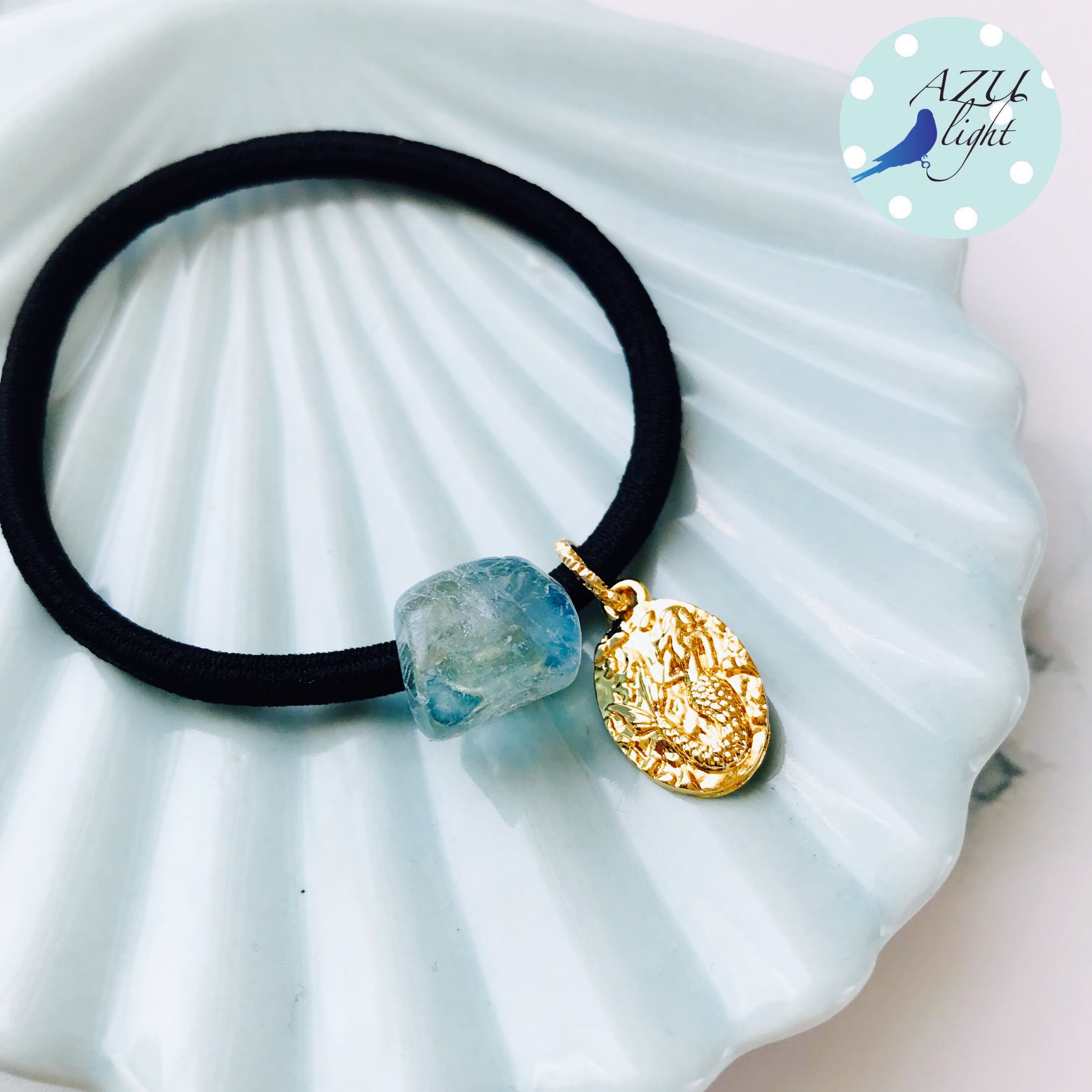 アクアマリン(約13×11×6〜7㎜/AA++)&マーメードモチーフ(16×11.5㎜)を合わせた、大人カジュアルなヘアゴムです。