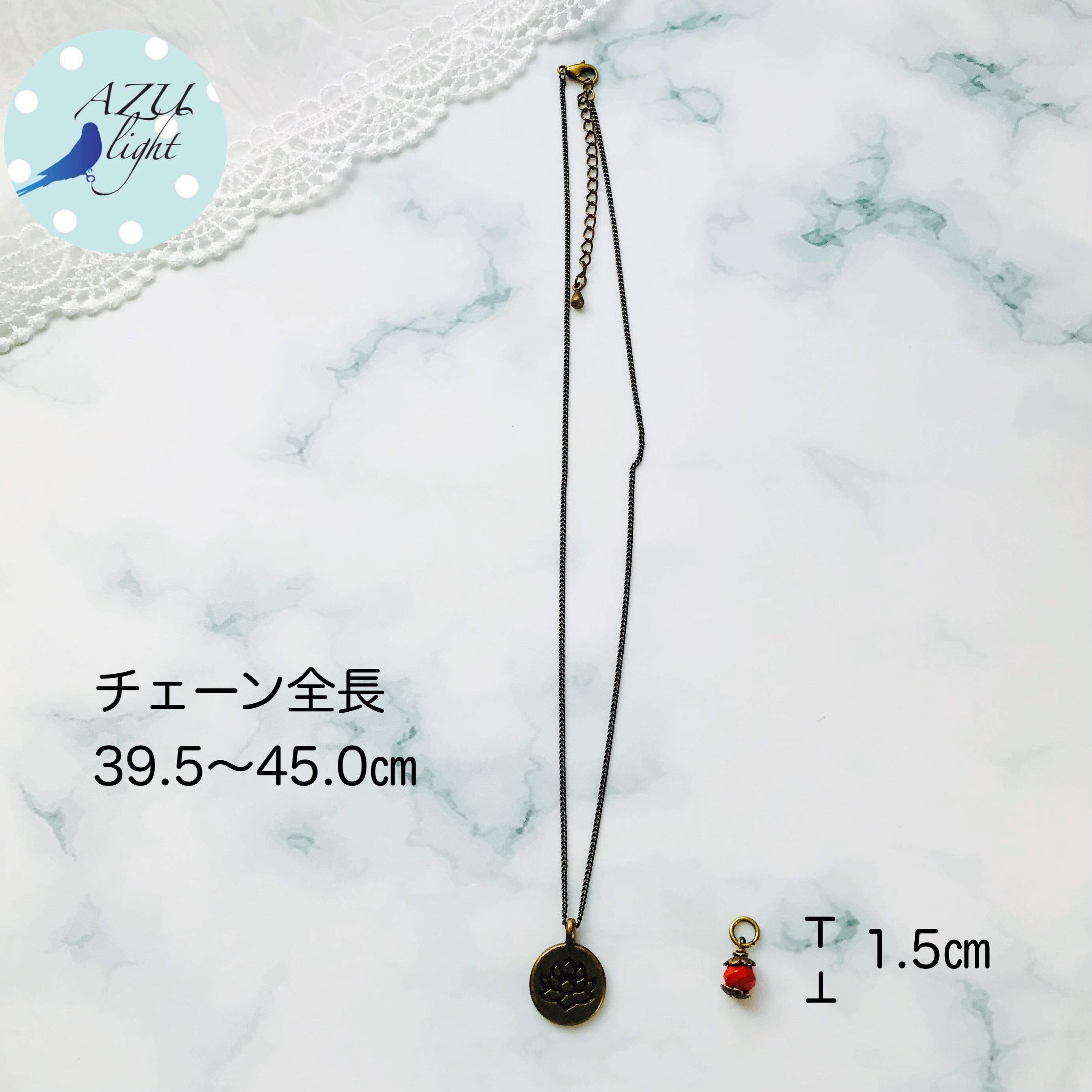 【サイズ】チェーン全長 39.5〜45.0㎝(レッドジャスパーチャーム/1.5㎝)