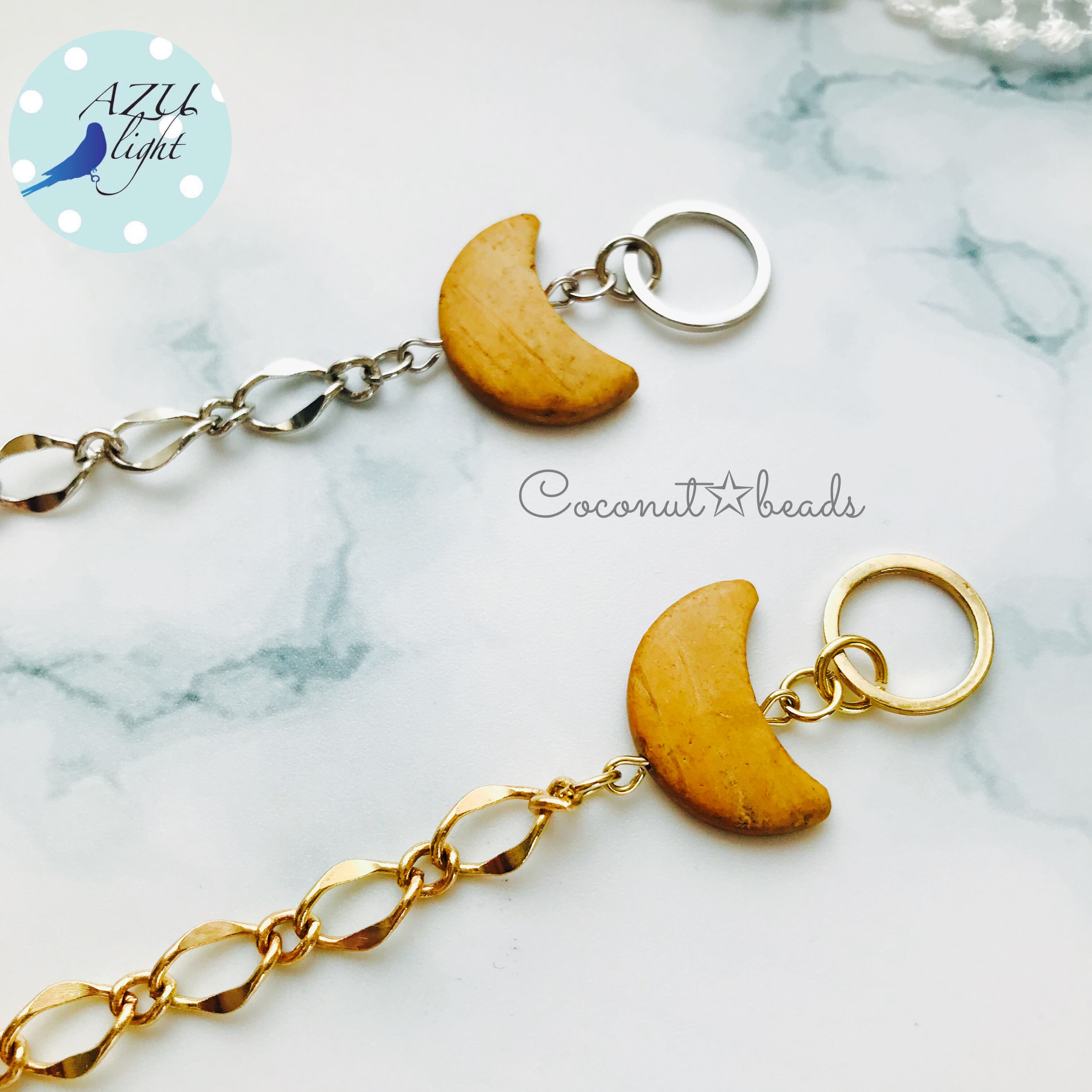 アメジスト(約9×11×10㎜)&三日月型ラタン(約50×30×4㎜)×三日月モチーフ(33×44㎜)&太陽モチーフ(直径16.5㎜)&三日月ビーズ(約20×13×3㎜)を合わせた、大ぶりな3wayバッグチャームです。