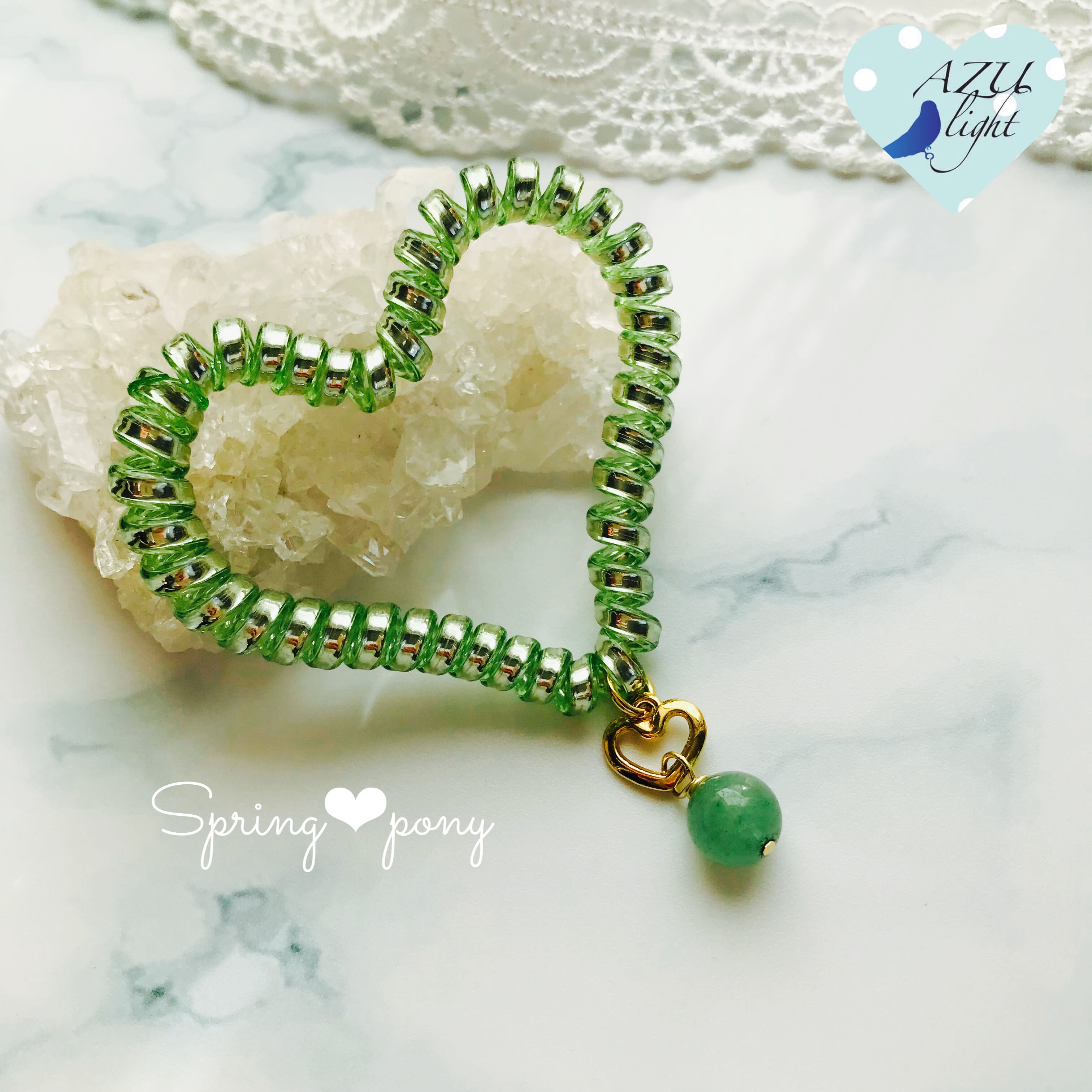 春夏/ギフト【包容力を高める&家族間のストレス緩和✴︎幸福や希望&平和と愛✴︎集中力UP&書き物のスキルを上げる✴︎5月誕生石&牡羊座/牡牛座/乙女座/天秤座の守護石】グリーンアベンチュリン×オープンハートモチーフ×ハート型スプリングポニーのヘアゴム/キーホルダー/バッグチャーム