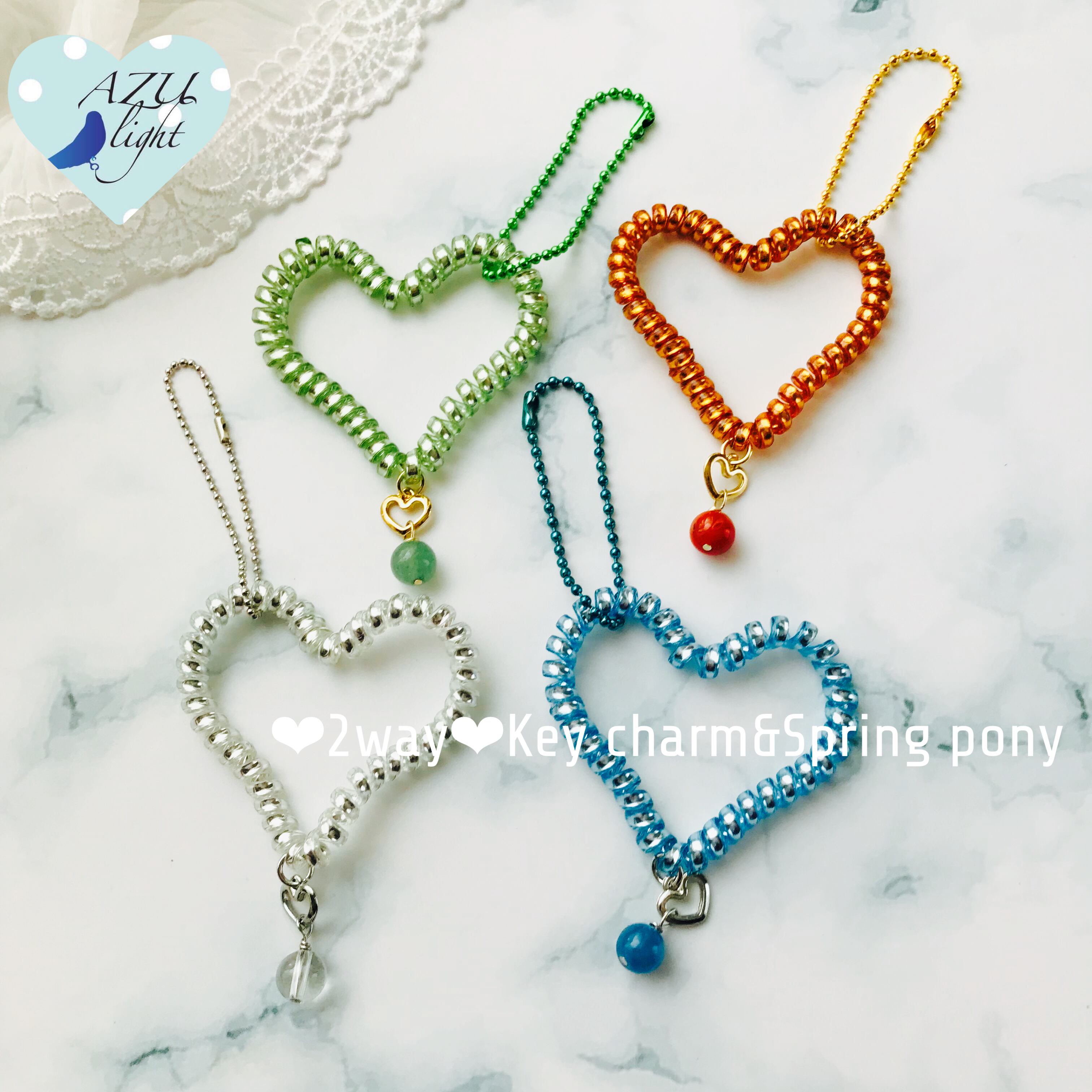 サードオニキス(8㎜玉)&オープンハートモチーフ(約9×10㎜)&メタリックカラーのハート型スプリングポニー&ポールチェーンを合わせた、お子様から大人までお楽しみ頂ける2wayヘアゴム/キーホルダー/バッグチャームです。
