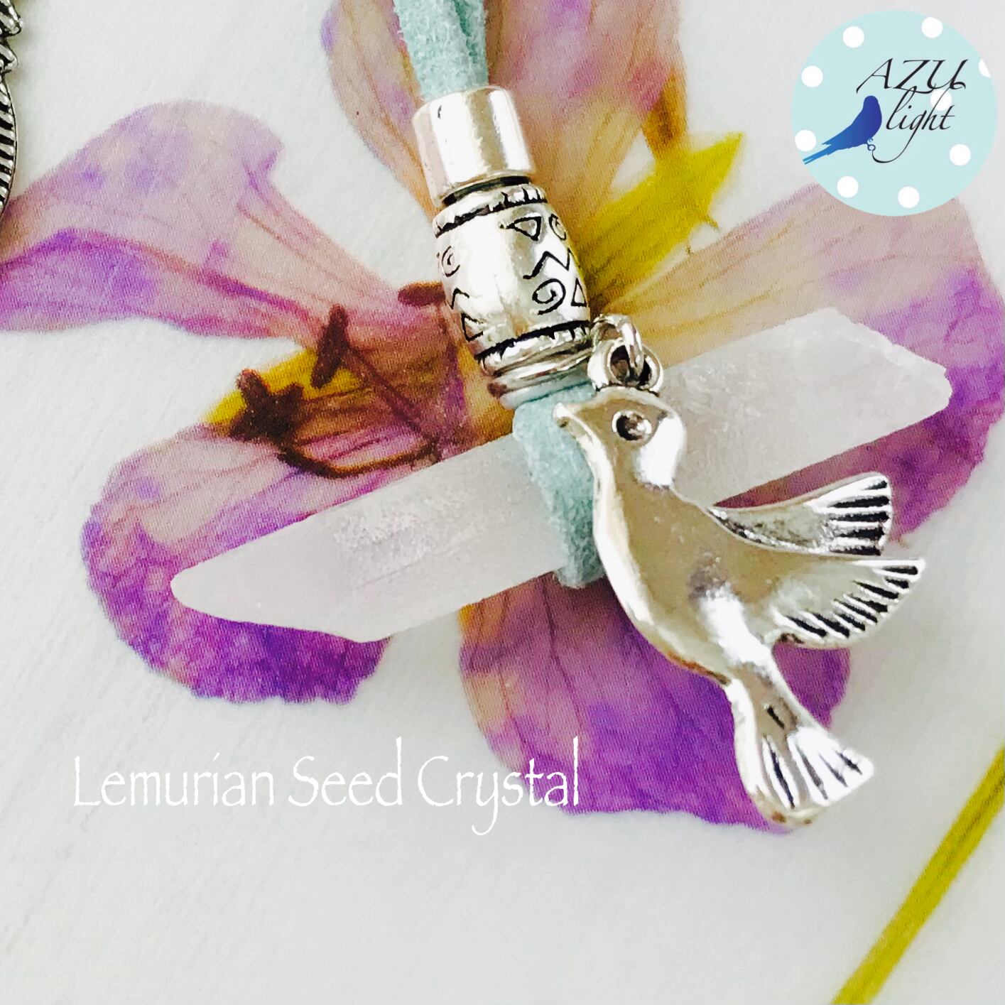 希少/サイズフリー【古代レムリアの知識と叡智へのアクセス✴︎水瓶座/獅子座/射手座/牡羊座の守護石&4月誕生石✴︎愛と滋養&女性性エネルギーを与える✴︎共感力や直感的意識、多様な才能を目覚めさせる】レムリアンシードクリスタル×鳥+羽モチーフのチョーカー/ネックレス