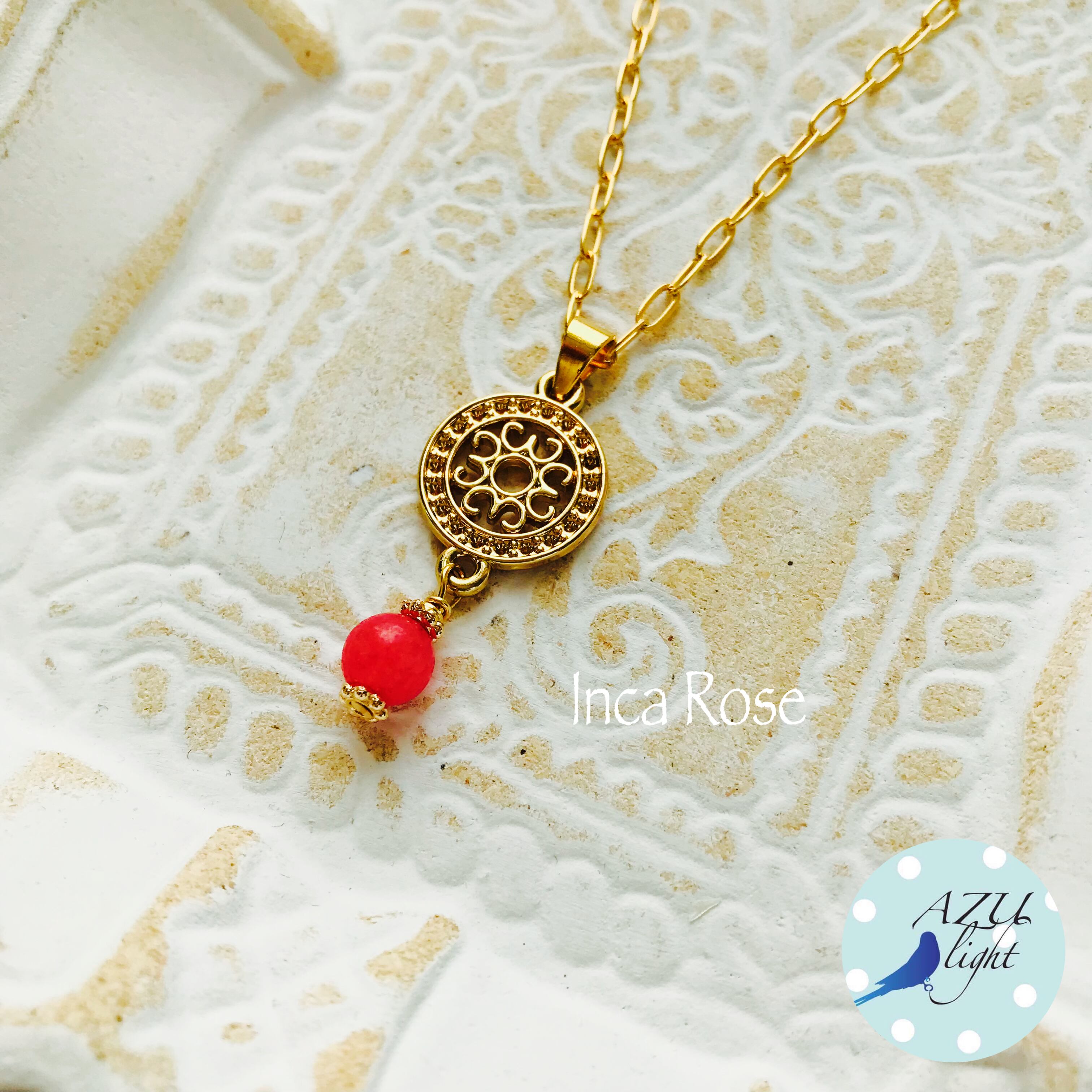 アルゼンチン産ロードクロサイト/インカローズ(6.5〜7㎜玉)&太陽モチーフ(直径/15㎜)&羽モチーフ(10×4㎜)を合わせた、大人カジュアルな2wayネックレスです。