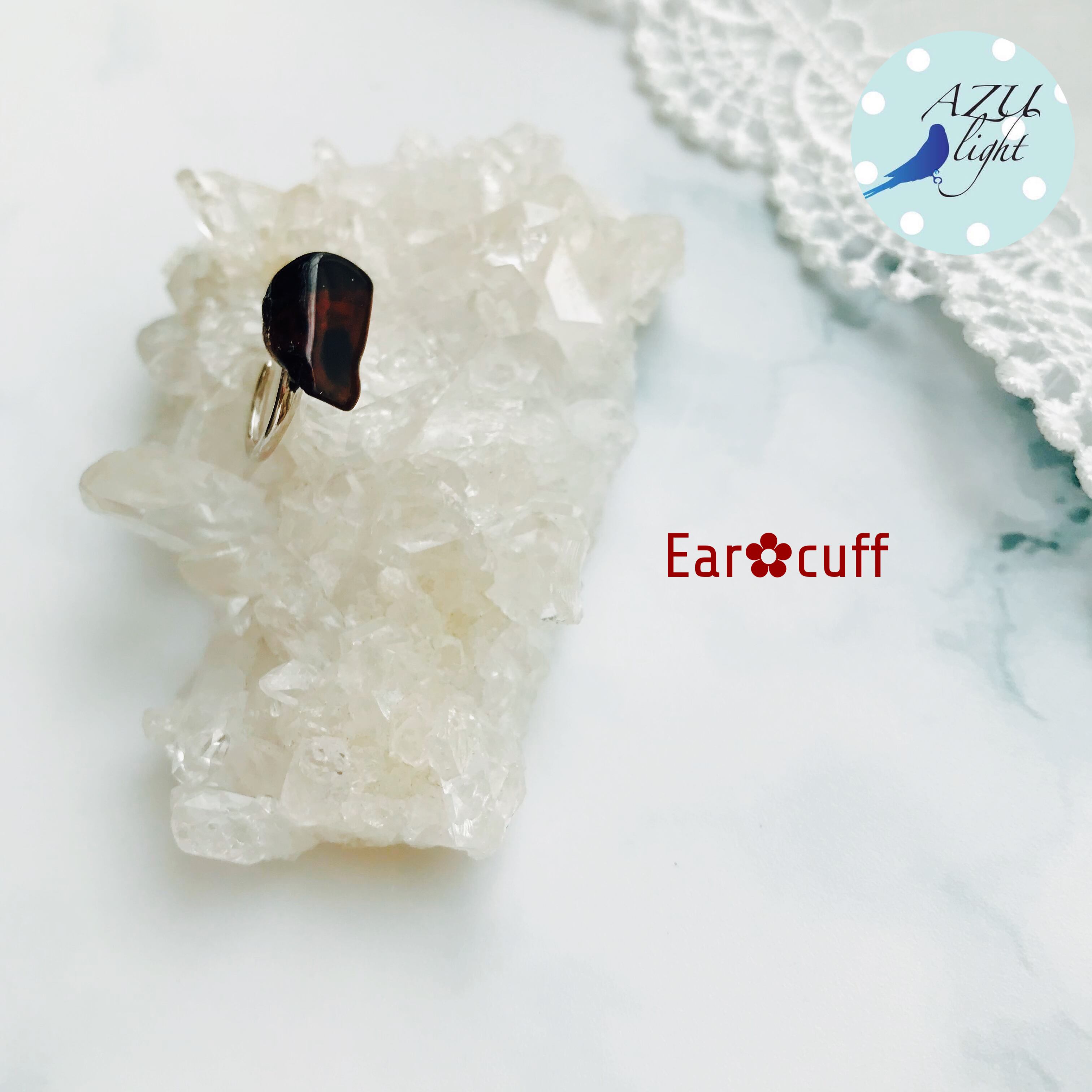 レアストーン北海道産紅十勝石(約11×7×2〜4㎜)の、シンプルな一粒イヤーカフです。